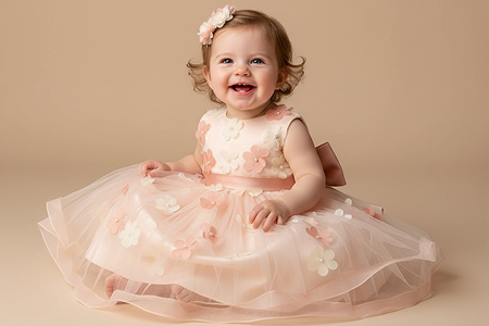 We carefully select premium, breathable, and hypoallergenic fabrics to ensure maximum comfort for sensitive baby skin. Popular materials include organic cotton, soft muslin, cotton voile, light satin or silk blends for formal gowns, and bamboo rayon for eco-friendly collections. These fabrics provide a soothing touch and natural breathability, keeping babies comfortable in both warm and cool climates. Sustainable and ethically sourced options are also available for conscious brands.